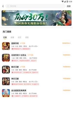 4、并且还能进入排行榜,主要有推荐榜、新服榜、人气榜等。