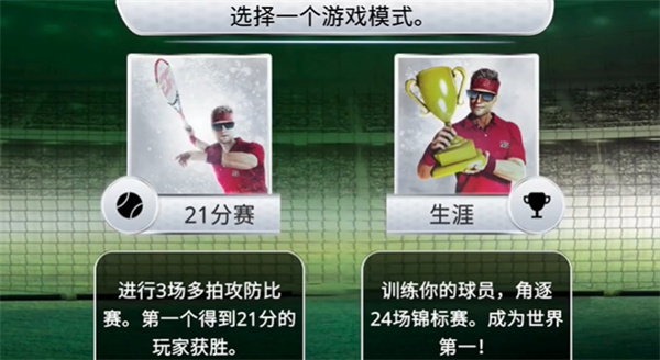 1、进入游戏后,一开始有2个游戏模式,一个是21分赛,还有就是生涯。