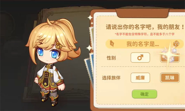 1、玩家需要先去输入一个名字,然后选择一个伙伴,点击确认即可进入游戏。