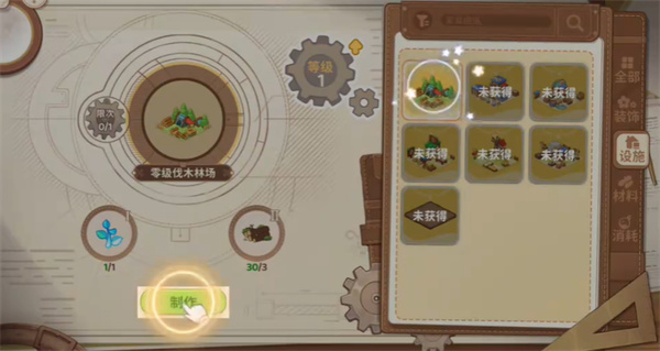 3、维修好后,直接进入工坊,可以学习不同的图纸,就能制作出不同建筑物,比如伐木场。