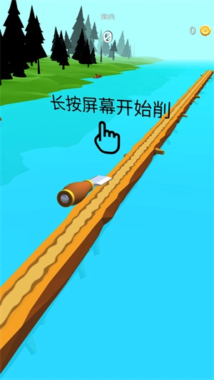 1、长按屏幕,就能开始削木头。