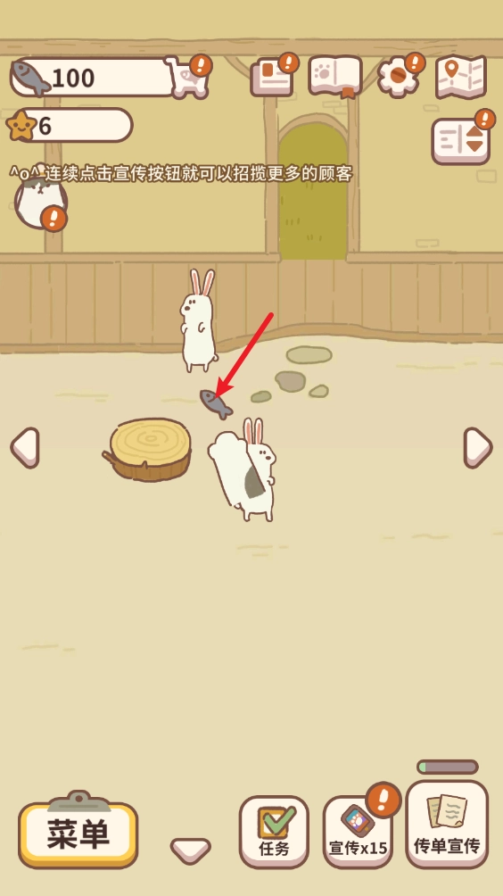 1、进入游戏后,我们需要通过连续点击来招揽客人。
