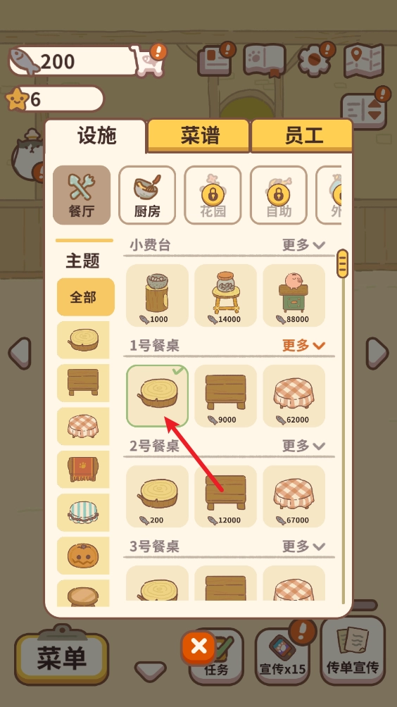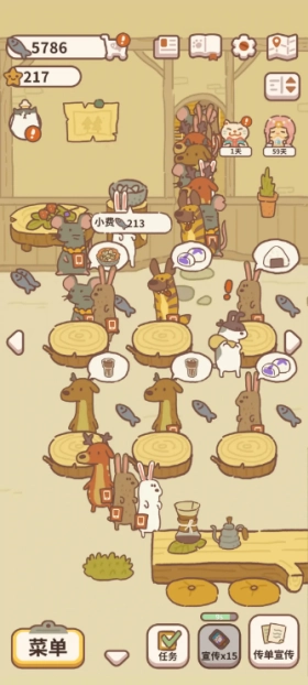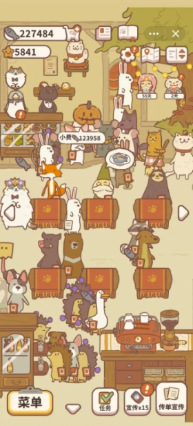 5、当拥有足够的小鱼干时,点击左下角的菜单就能放置更多桌子了。