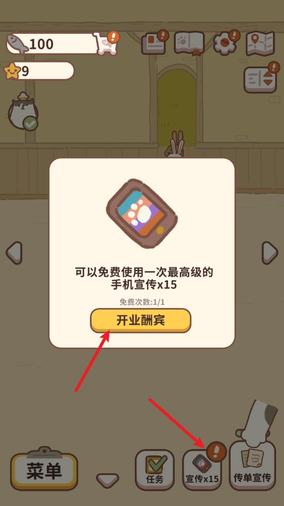 6、点击右下角的宣传单可以同时招揽更多的客人。