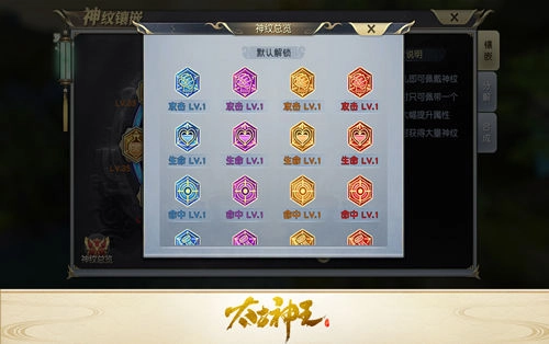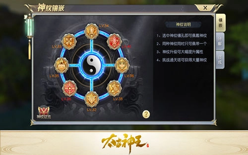 当玩家逐步完成五转、六转乃至七转化神后,对各类属性需求的增长会让你明显感觉到神纹镶嵌槽愈发紧张,此时通过合成神纹来提高槽位利用率就显得尤为重要。在成功通关炎天塔的BOSS层后,神纹系统的合成功能便会解锁,你可以把指定的两个单属性神纹合成为更强大的双属性神纹,而且到了后期还会开放四属性神纹的相关内容。