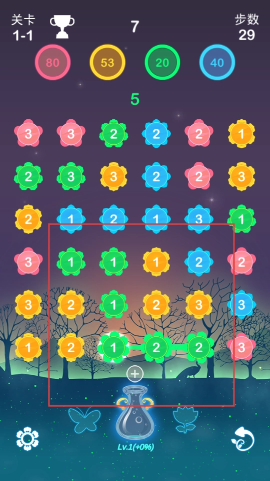动态场景交互:随着关卡的逐步推进,背景环境会呈现出昼夜交替与季节更迭的变化;消除特定种类的花朵,还能触发蝴蝶群舞、流星雨等场景彩蛋,进一步提升探索的趣味性与视觉上的惊喜感。