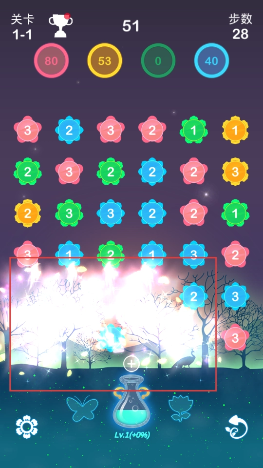 双重匹配的实用技巧:仔细观察游戏盘面,找出相邻的同色花朵与相同数字的组合,优先处理那些能同时触发这两种匹配效果的区块。借助边缘反弹的技巧可以创造额外的排列机会,同时要注意为后续的连锁反应预留出足够的空间。