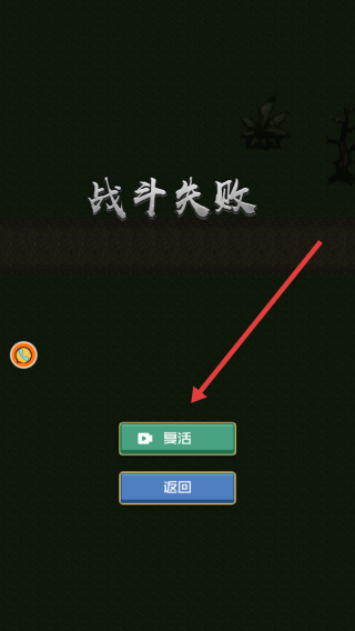 3战斗失败后,你可以选择点击复活并观看广告来继续当前关卡,也可以选择返回重新开始,借助复活机制再次挑战怪物以争取胜利。