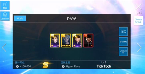 3、打歌时建议优先选用同一主题的卡牌,这类卡牌能带来更高的分数收益;高级别卡牌的主要优势在于血量更厚,但如果追求高分,还是需要搭配同一主题的卡牌进行游玩。