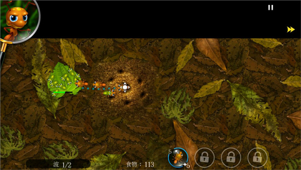 5、除了工蚁,玩家还能召唤兵蚁(士兵)协助工蚁运输食物,同时保护工蚁免遭其他虫子的侵害。
