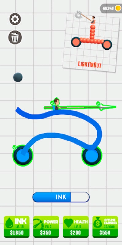 1、在游戏里用有限的墨水绘制出各式各样的战车,和敌人展开对抗。