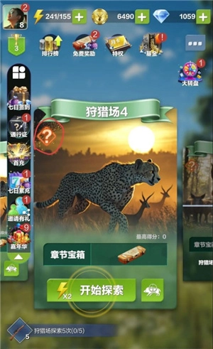 2、值得一提的是,进入狩猎场探索也会随机获得奖励,金币大奖更是随机出现。点击左上角的“?”按钮可以查看详细的奖励说明。