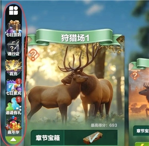 1、点击关卡左上角的“?”按钮,就能查看该狩猎场可能出现的动物种类以及关卡的掉落奖励。