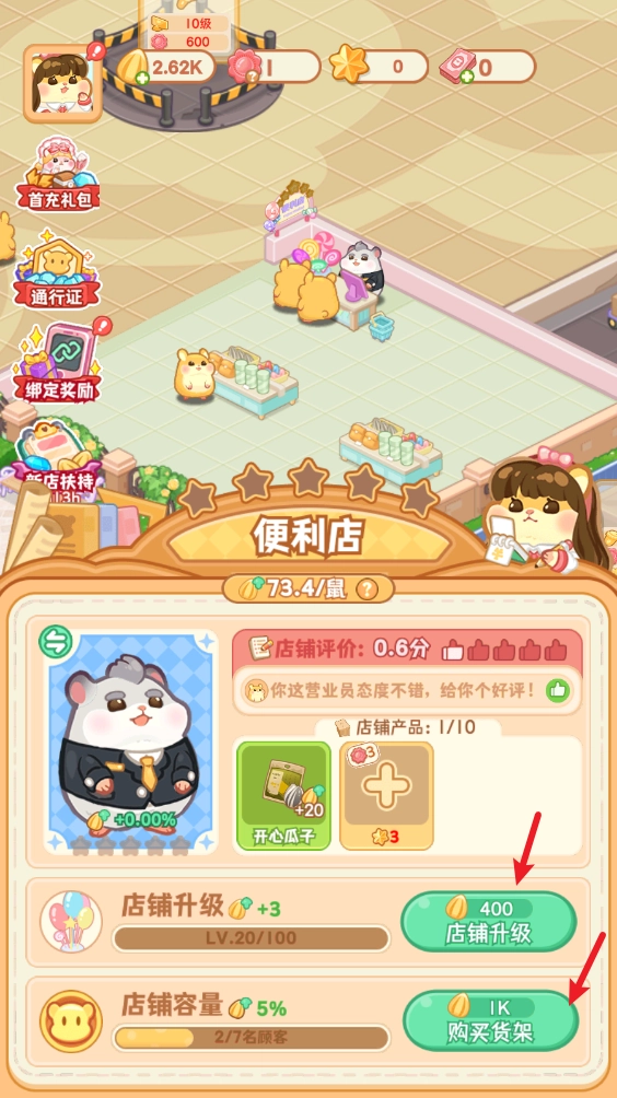 4、点击店铺内的任意位置,我们就能对店铺进行升级,还可以添加新的货柜。