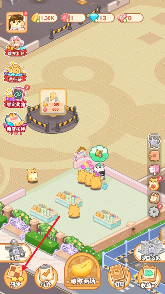 5、获取研发点后,点击商铺,接着在商品栏中进行研发操作。