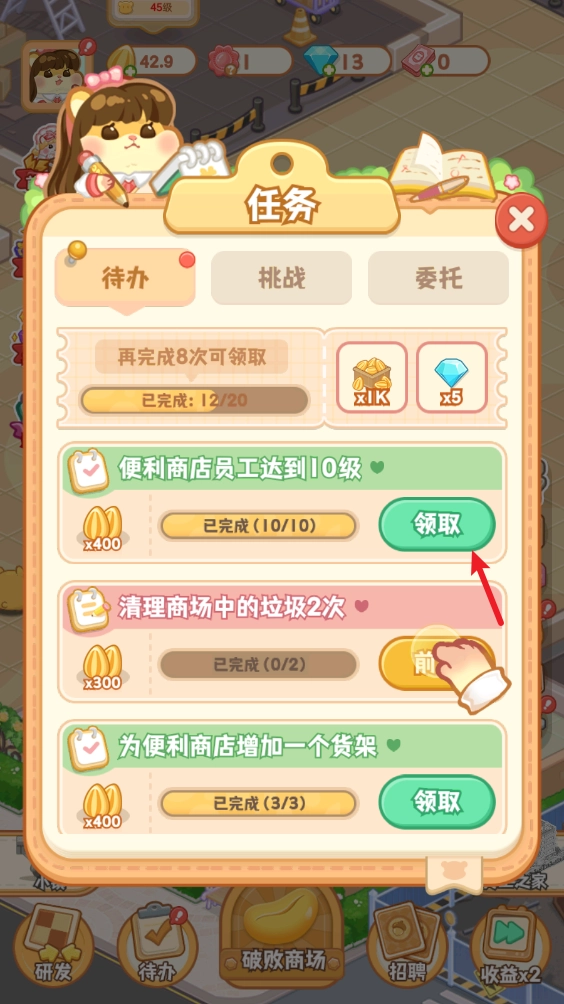 3、持续扩建自己的百货公司,开设更多不同类型的店铺,招募更多员工,让收益不断增长!