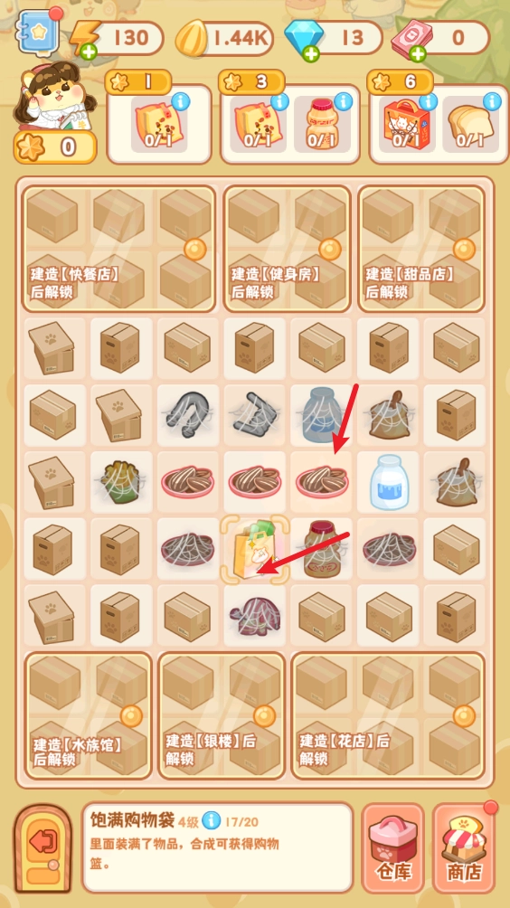 3、拖拽相同的物品就能完成合成,从而获得更高级别的物品。