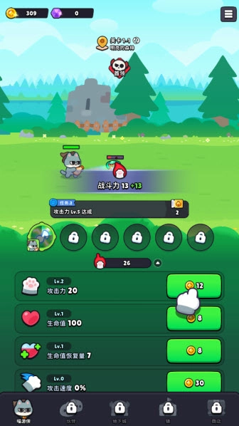 3、通过海量成长内容强化你的猫咪战士,击败强大敌人!