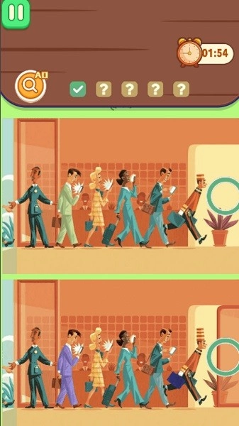 这是一款经典的找茬游戏,在卡通可爱的画面中,两幅看似相同的图片里藏着多处不同。快发挥你的侦探才能,找出所有差异,闯过一个个关卡吧!它不仅能帮你打发闲暇时光,还能让你在观察图片的过程中拓宽视野,更能通过寻找细微差别的训练,有效提升你的观察力。