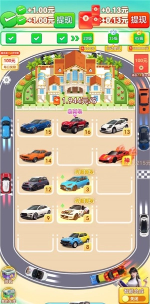 这款游戏真的很有趣,每天都能持续合成汽车,我要努力解锁最高等级的车辆,这样就能获得最丰厚的奖励了。