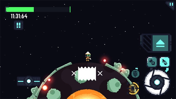 点击攻击键即可启动钻头,该钻头可用于破坏星球的地壳、炮塔以及追踪炮。