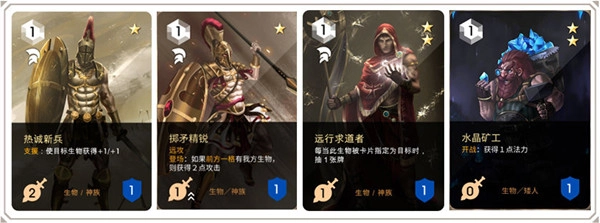 1法力:热诚新兵×3,掷矛精锐×3(具备远攻特性),远行求道者×3,水晶矿工×3