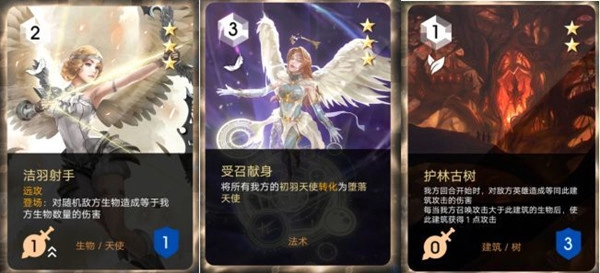 分为生物、法术、建筑三大类型,这三类卡片各有若干分支,通过相互构筑搭配,能够形成多样的强力组合。