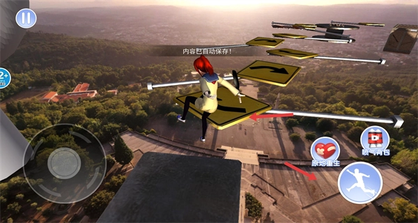 在高空场景下,借助路牌搭建跳跃路径并规划落点以防止坠落,同时留意监控人员的干扰,适时使用疾跑扩大跨距,通过爱心道具应急回血,把控好节奏向安全区域移动。