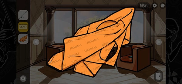 回到最初的场景,使用遥控器开启电视,接着盖上橙色的幕布。按照规律,打开第三个抽屉。