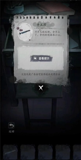 进入房间靠里的衣柜,点击里面的衣物,再用手钻对准那个小洞操作,之后前往阁楼。在阁楼的床上能找到一块黄色布料,右侧桌子上可以拿到棉线卷和螺丝刀,那一排书籍里有一本《五行解读》。阁楼左边的柜子,第一层放着一张画,第二层有指甲刀,还有一本名为《降头》的书。