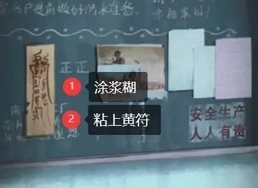 按照线索指示的位置来摆放物品:门口放置八卦镜,宣传栏处用浆糊粘贴黄符;之后回到那扇锁住的门,在门的下方使用钳子,获取【钥匙串】;接着用钥匙串打开走廊尽头的门,在桌上找到【合照】;最后依据合照里的顺序,按“左右左下中右下上”的步骤点击五角星机关,即可得到【录像带】。