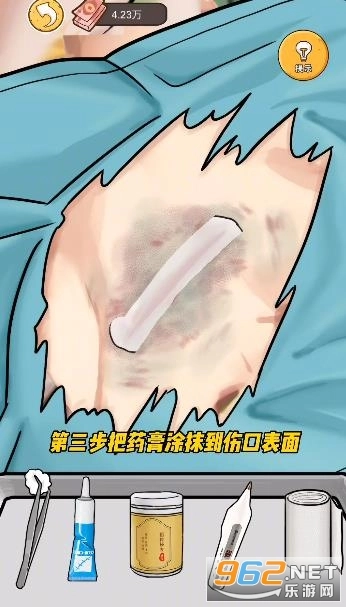 第三步把膏药涂抹在伤口表面,然后用手涂抹开。