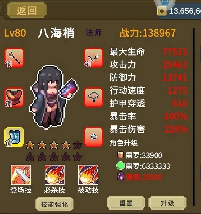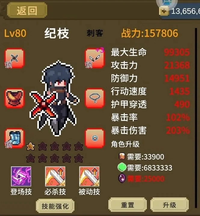 主打纪枝加八海再牵两头狗,有智障带上智障能提升纪枝大招伤害。纪枝经过个人测试大招伤害与暴击和爆伤不挂钩,且1技能被动对大招没有额外加成,所以只需要升2技能即可,接下来就是速度拉满。八海一个控场法师,暴击即可眩晕,所以属性推荐优先百暴再考虑速度。两个属性达到即可轻松通关。