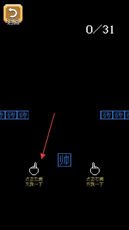 进入关卡挑战场景后,界面会呈现左右跳跃的操作指引,按照红色箭头所指方向,点击左侧区域进行一次左跳操作,以此来操控角色向左跳跃。