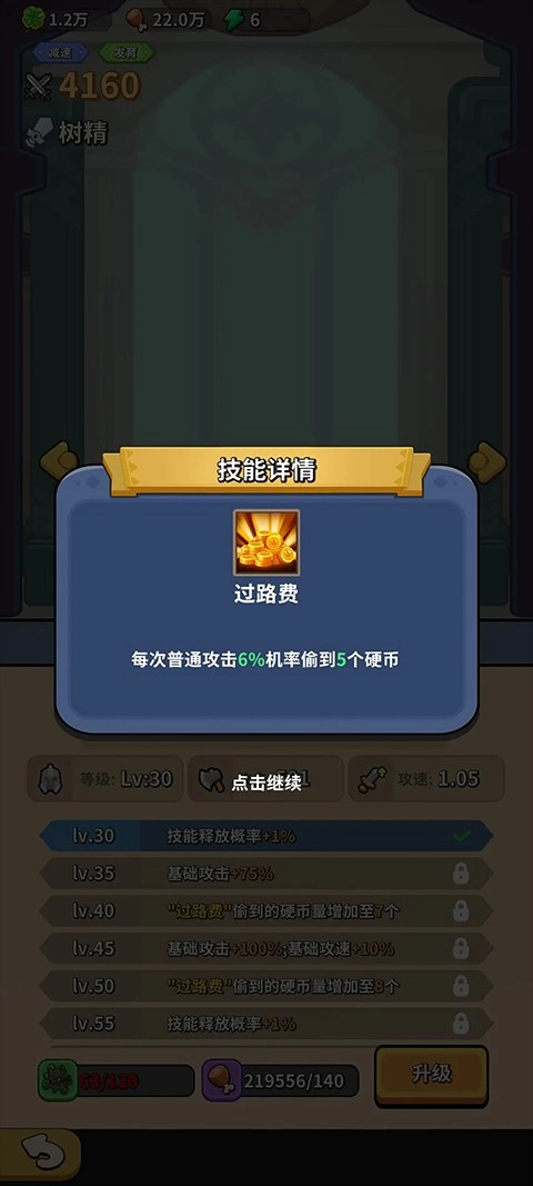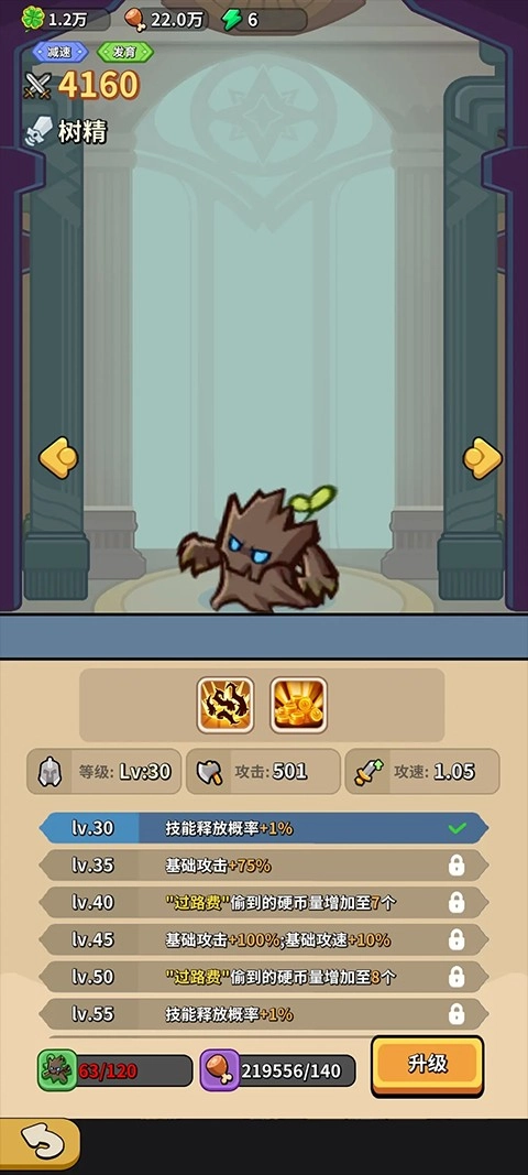 “树精”的普攻每次有6%的概率能获取5个银币。