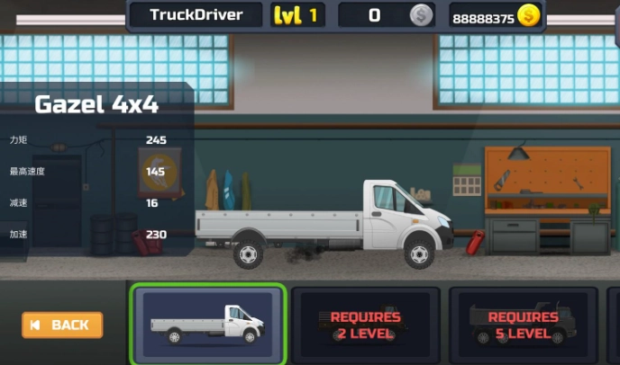 在卡车种类里你可以更换卡车,只是当前需要完成游戏解锁才能进行。
