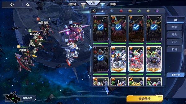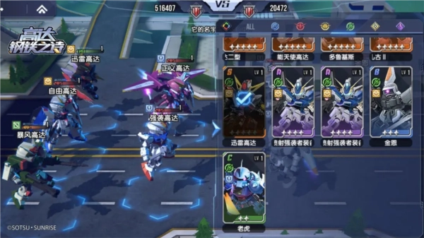 最后一个位置可安排【迅雷高达】或其他【输出机体】来增强队伍的输出伤害能力,如此一来,一套初期战力最大化的阵容就构建完成了。