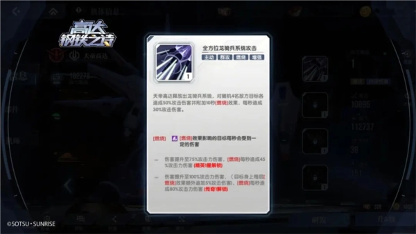 明确核心要点后,搭配队友的思路就变得清晰了。前期能获取的正义高达,它的主动技能【同时攻击】和被动技能【命运-00】可以对敌人造成燃烧效果,这与自由高达的特性十分契合。