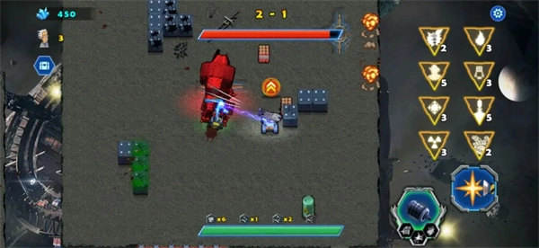 每一关都设有一处小型地牢,只要成功击败守卫此地的小头目,就会触发机械手装置,为战车解锁升级选择——是提升生存能力,还是强化爆破威力,全凭你自己决定!