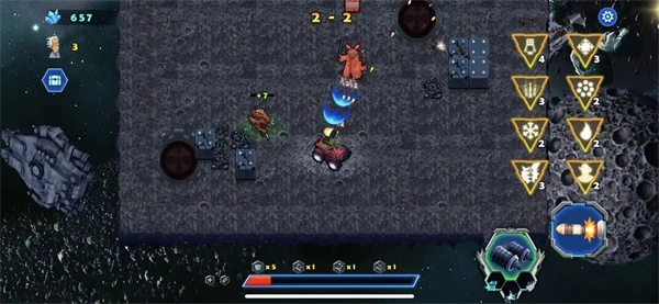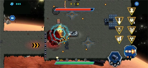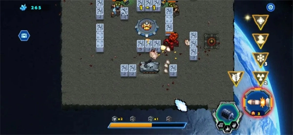 ● 在各个关卡里,出口处都会有小boss镇守,你需要升级战车的武器来战胜它们;