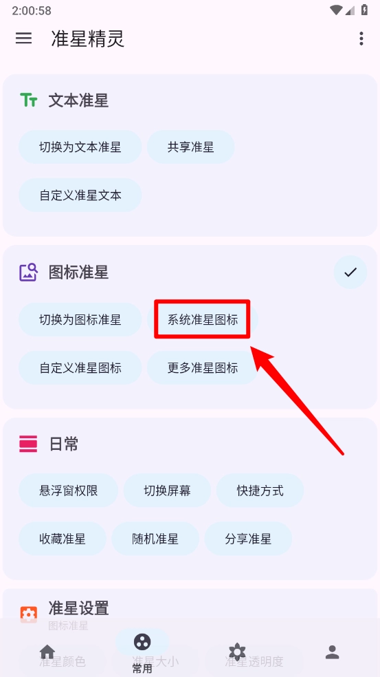 2、进入后点击"系统准星图标",如图所示。