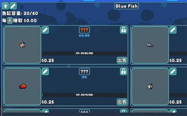 2、这些鱼长大以后就能直接售卖,可以得到一些金币。