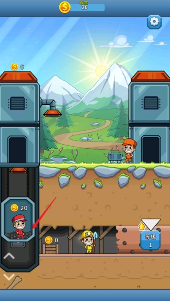 1、游戏中挖矿分成三步骤,首先点击黄色的矿工进行挖矿。