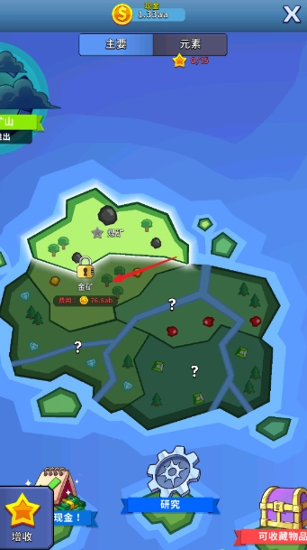 3、你还可以去研发科技,解锁更多不同的珍稀矿石山,开采更多的珍稀矿石,成为采矿大亨!