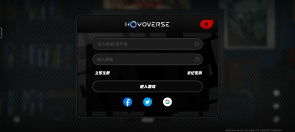 2、点击登录,登录米哈游国际服账号,没有账号的玩家可以点击下方注册一个;