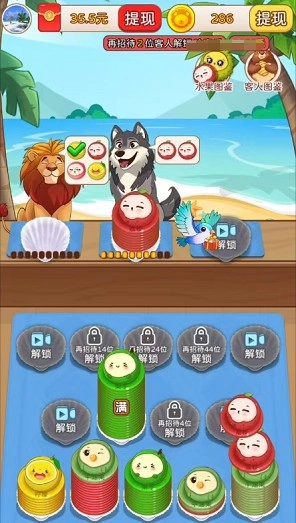 2、不断完成订单,就能持续解锁新的水果图鉴以及客人图鉴,要是集齐了全部的图鉴,就能去领取限定红包福利。