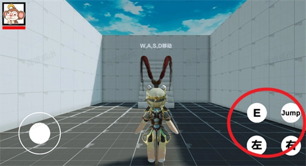 3、右边的按键,点击左右即可出拳攻击,而jump可以跳跃,至于E则是抓取。
