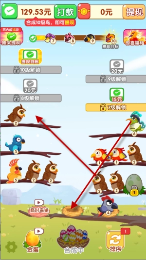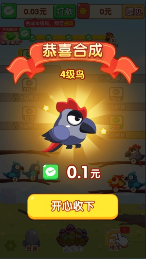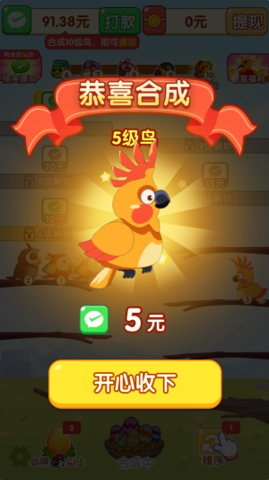 4、合成特定等级的小鸟还能直接获得提现奖励。