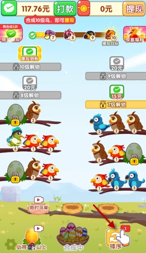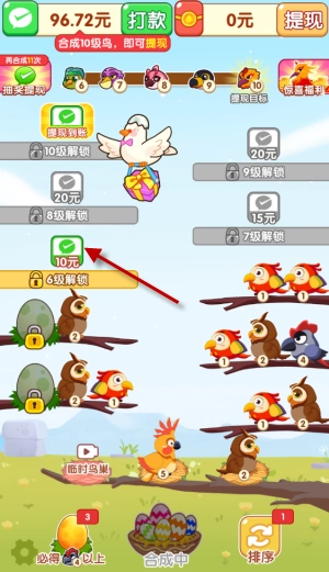 3、通过不断的合成高等级小鸟还将解锁更多树梢,提现比例也会不断变高,让你能够赚更多!