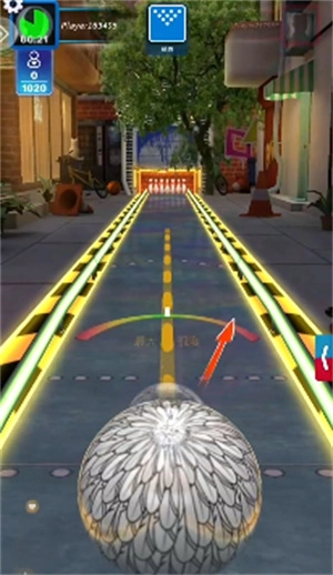 进入比赛后,挑选下方的保龄球,迅速调整好角度与力度,就能把保龄球投掷出去。